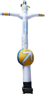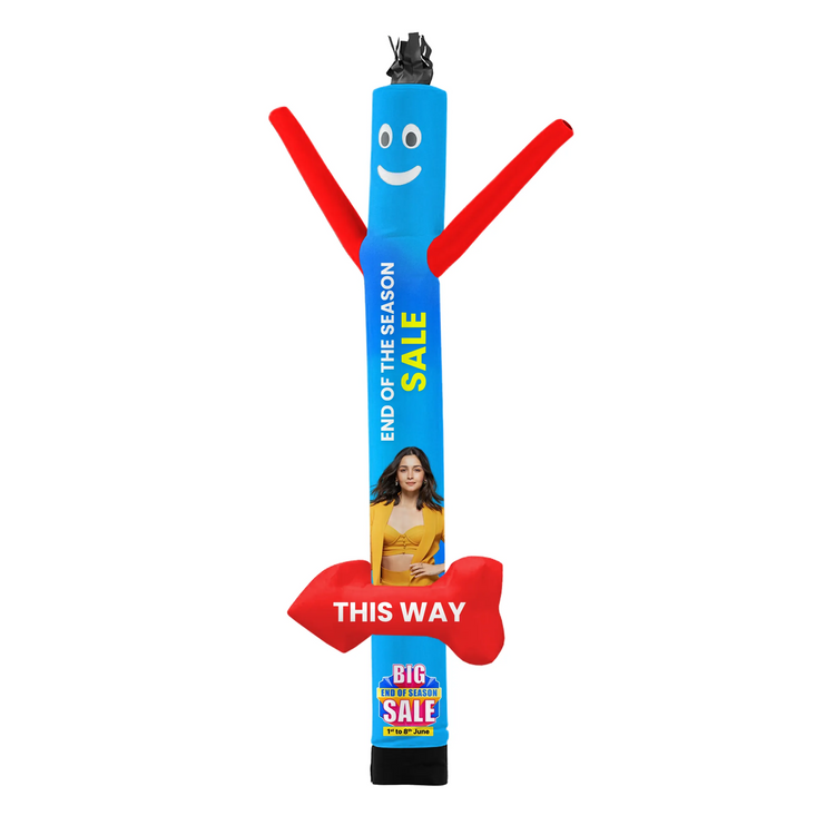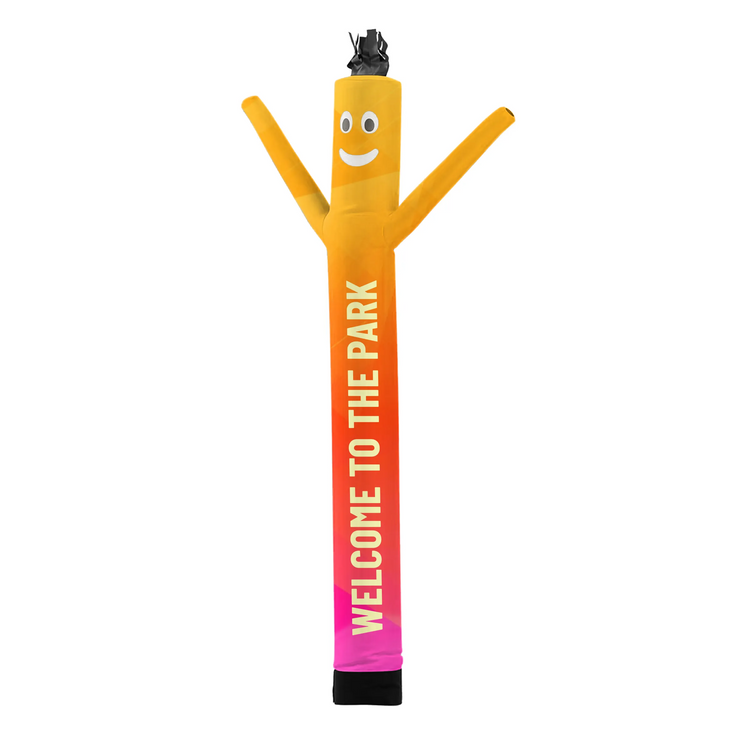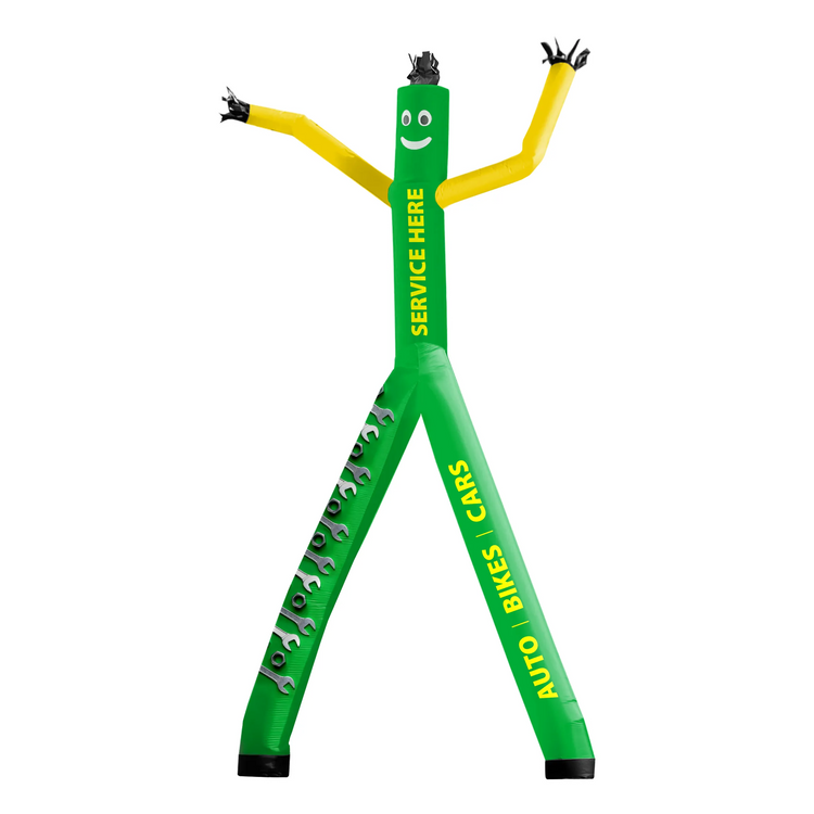 A custom wacky man is a lightweight fabric tube that mounts securely to a powered air blower. When activated, high-volume airflow causes the inflatable to wave, twist, and dance, creating unpredictable motion that draws attention and engages customers.