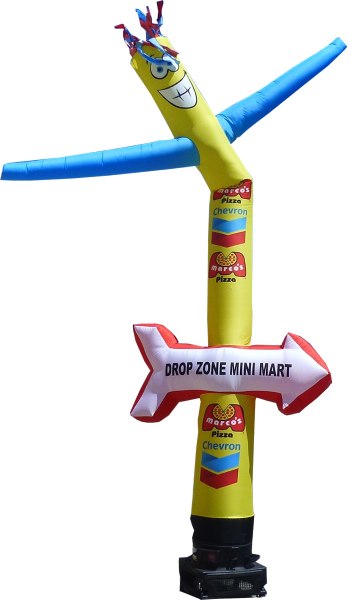A custom wacky man (also known as a wacky waving inflatable tube guy, inflatable air dancer, or blow-up dancing man) is a high-impact visual advertising tool engineered to attract attention, increase walk-in traffic, and make your promotions visible from a distance.