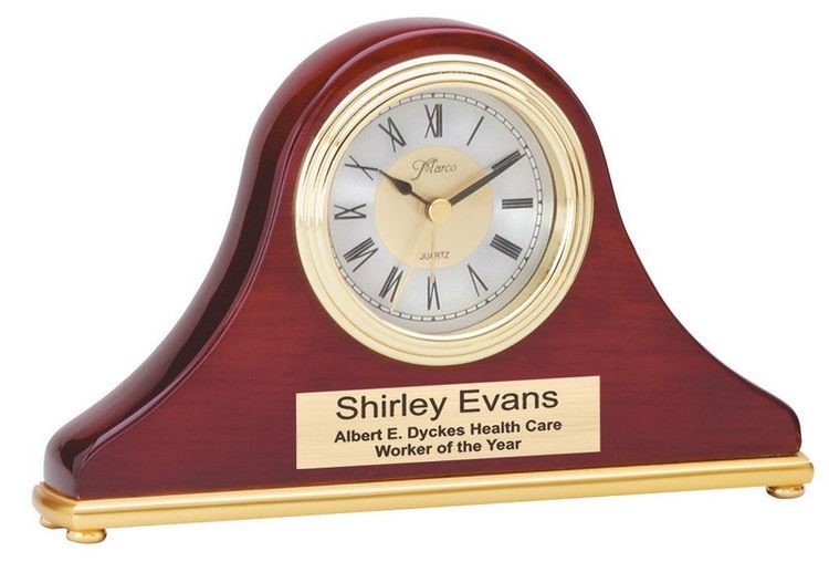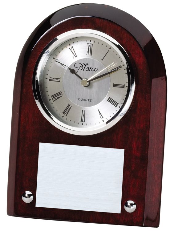 # 6-5-ARCH-GLASS-DESK-CLOCK-WITH-METAL-POSTS-ROSEWOOD-PIANO-FINISH 10 day production time$161.17 - $201.46 | Min Qty 1