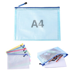 This A4 document clear grid file bag is made of PVC, waterproof and durable. With a zipper and a small loop handle, can keep you belongings safely and easy to carry. Large capacity and clear, you can see what is in the bag easily. This file bag is good to use in office for keeping some documents, can keep you table clean and tidy. It also good for school students to keep some notebook and other stationery. 13 2/5" L x 9 2/5" W