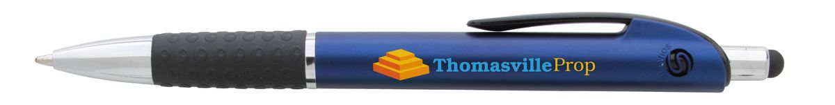 The Souvenir® icon is cut out of this pen's metallic barrel, revealing a pop of color that coordinates with the clip. A comfortable grip and capacitive screen stylus on the plunger make this a versatile writing instrument. Contains 43% recycled post-consumer recycled ABS.
