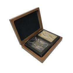 # 1329 - Wood Double Deck Playing Card Box with Cards, 6 x 4 1/2 x 1 1/2"
