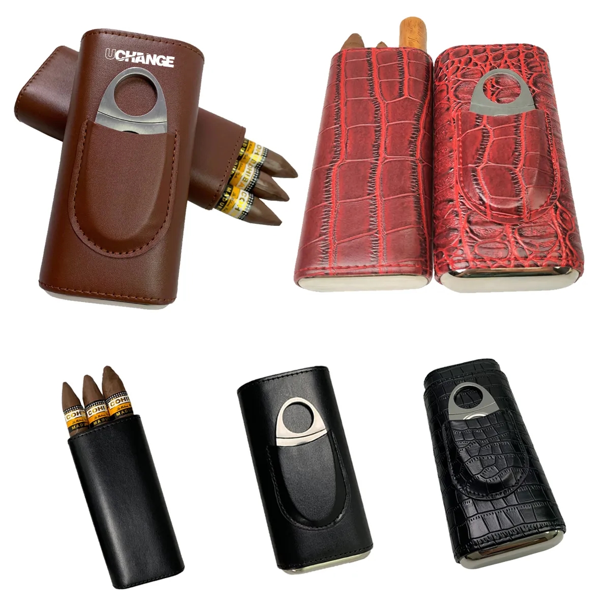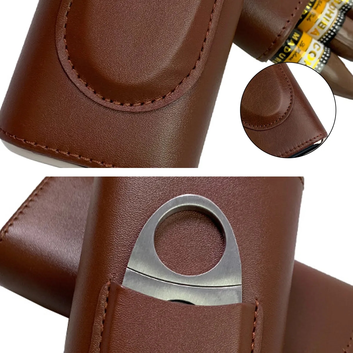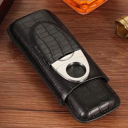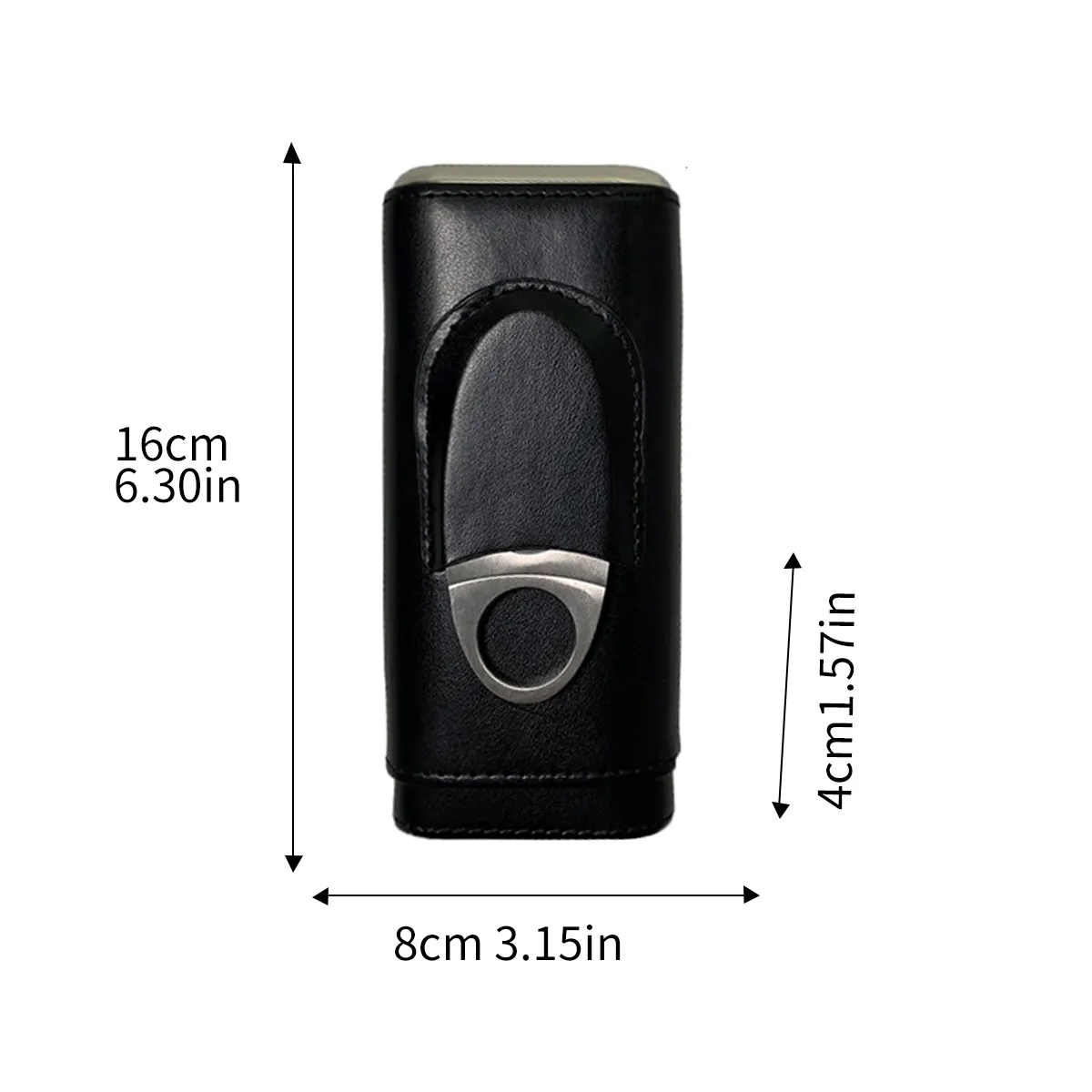 Additional InformationPU leather travel cigar case with double - guillotine cutter; logo - ready gift set for corporate, golf, and special events.