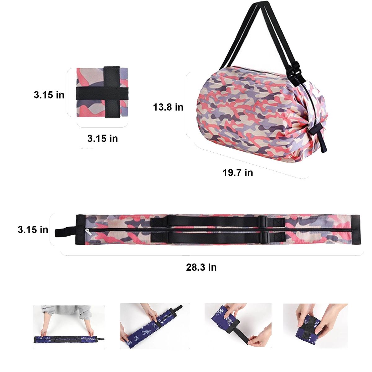 These shopping bags are made of rip-stop oxford which is lightweight and sturdy and it makes our reusable bags strong enough. The long strap allows you to carry it on shoulder or by hand, which makes carrying them into the house from the car much easier. Large capacity is enough for a family daily shopping.