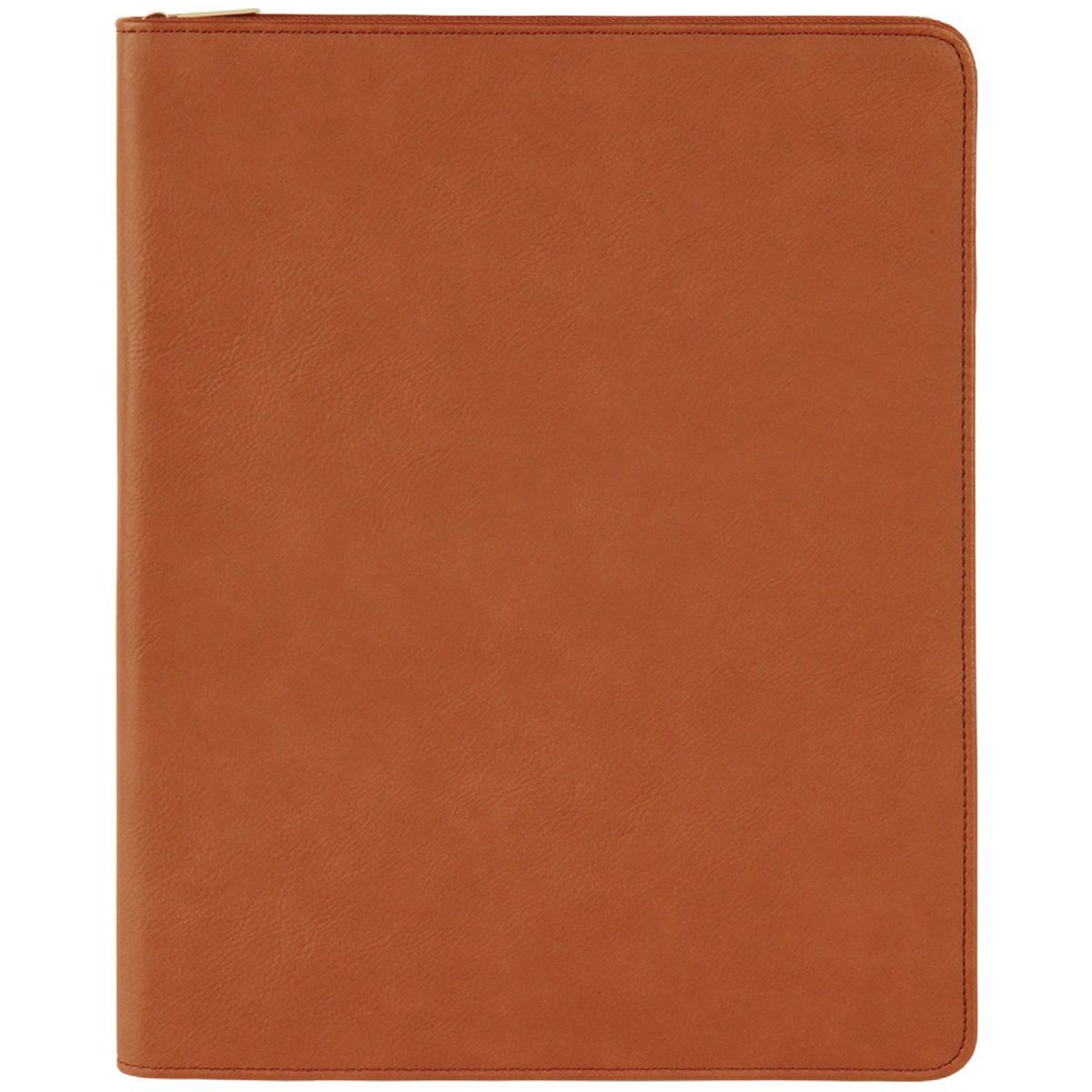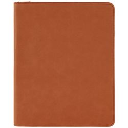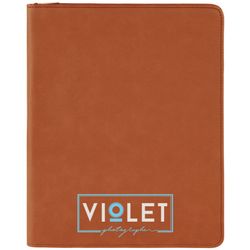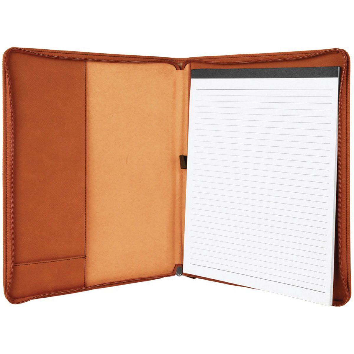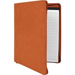 Leatherette portfolio with zipper is 9½" x 12". Comes with a note pad and a penholder. One pocket inside cover 3¾" W x 11¾" H, with a small flap on pocket 1¾" x 3¾". Office elegance at its best. Wipes off easily and does not show finger marks or water spots. Imprint color is black with it being laser engraved or Full color impirnt with UV Printed. Comes individually packaged in a black gift box. Makes an appreciated corporate gift for any executive.