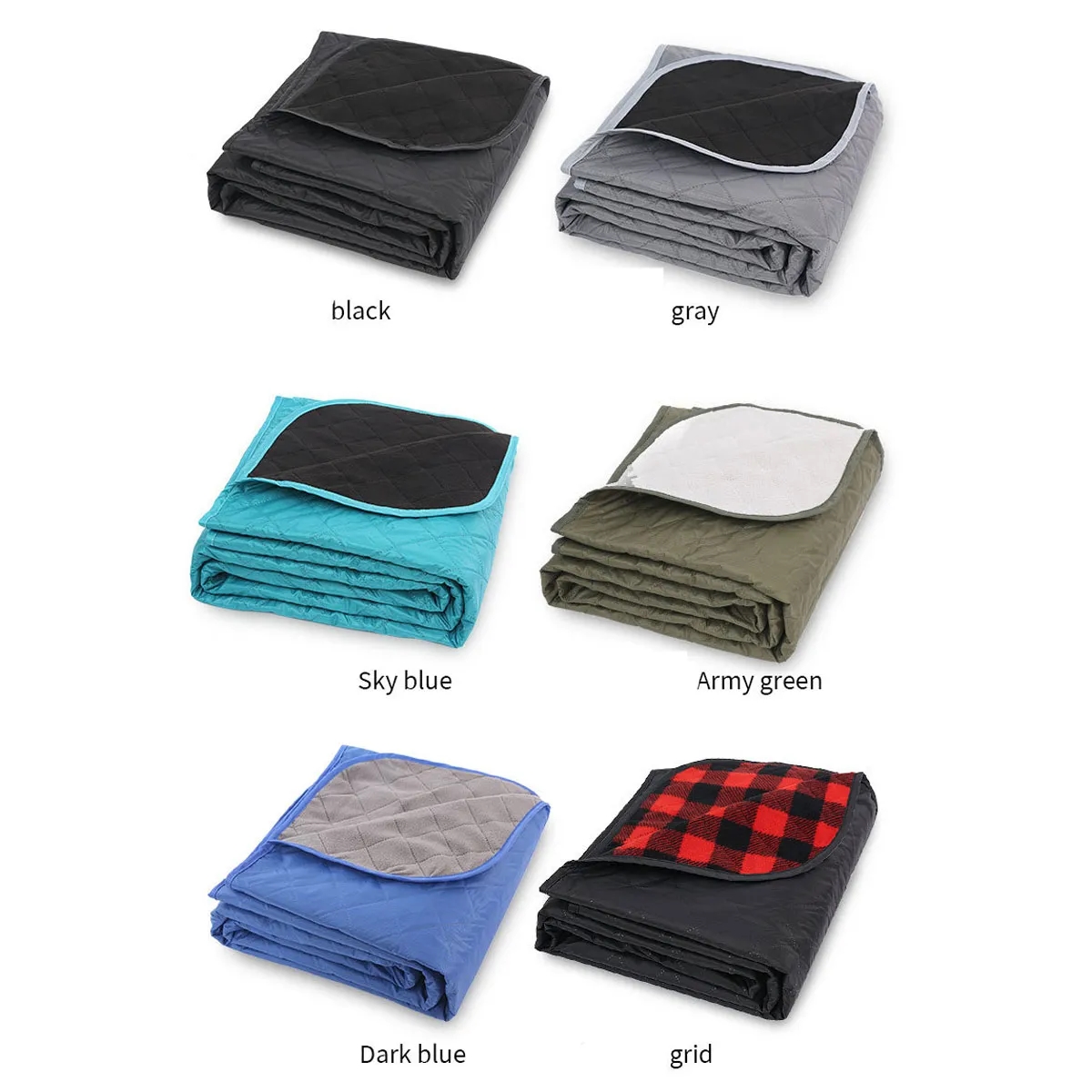 Multi-purpose blankets have waterproof and durable polyester backing and polar fleece. It will keep you warm and dry during outdoor camping or various sports and family activities. It gives the best cozy feel, that you do not need to ever worry about the cold weather outdoors. The blanket in order to improve safety, guarantees that the two sides will not slide, we use ultrasonic sewing and add a waterproof layer in the middle to ensure that other places cannot make the suede wet. It can accommodate up to three adults. It is very suitable for you to go to the park to play. The camping blanket isolates the wet and cold ground and will keep you away from the hard ground. It is an ideal choice for travel partners.