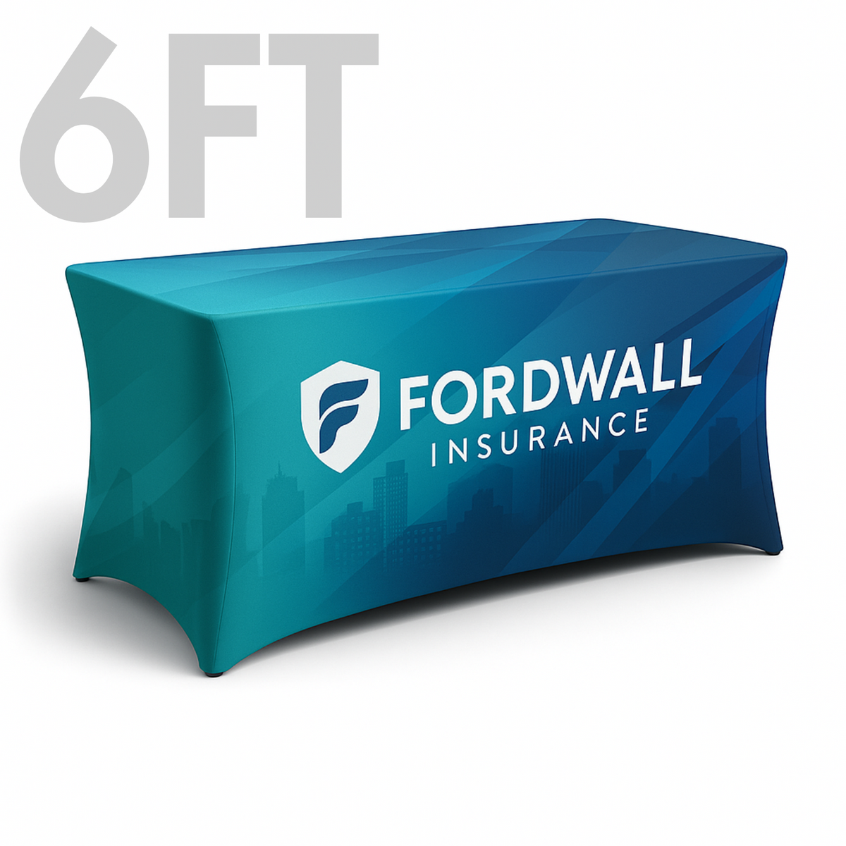Command attention with a table cover built to stretch your branding further. This sleek, contoured cover fits snugly around all four sides of a 6' table, delivering a smooth, wrinkle-free finish and vibrant, edge-to-edge full-color print. Made from durable 4-way stretch fabric (85% polyester, 15% spandex, 230gsm), it’s designed to perform at trade shows, conferences, and indoor or short-term outdoor events.