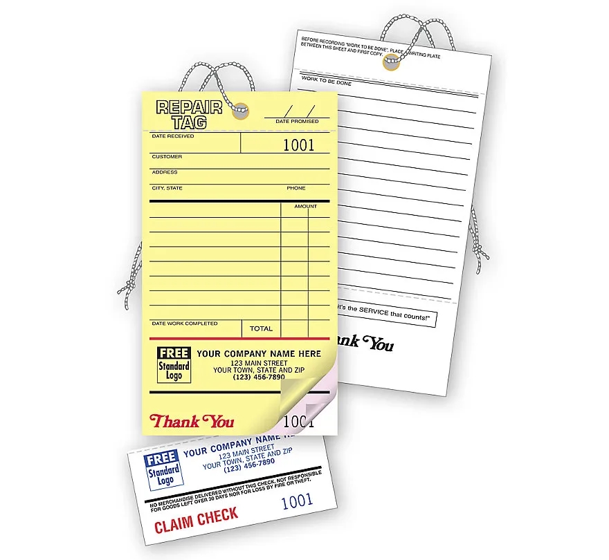 Repair Tags with Invoices and Detachable Claim Check
