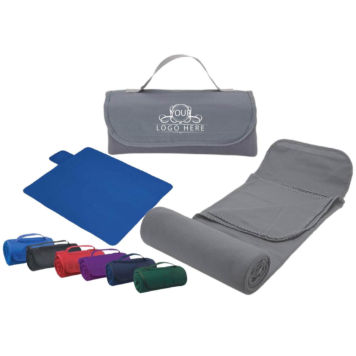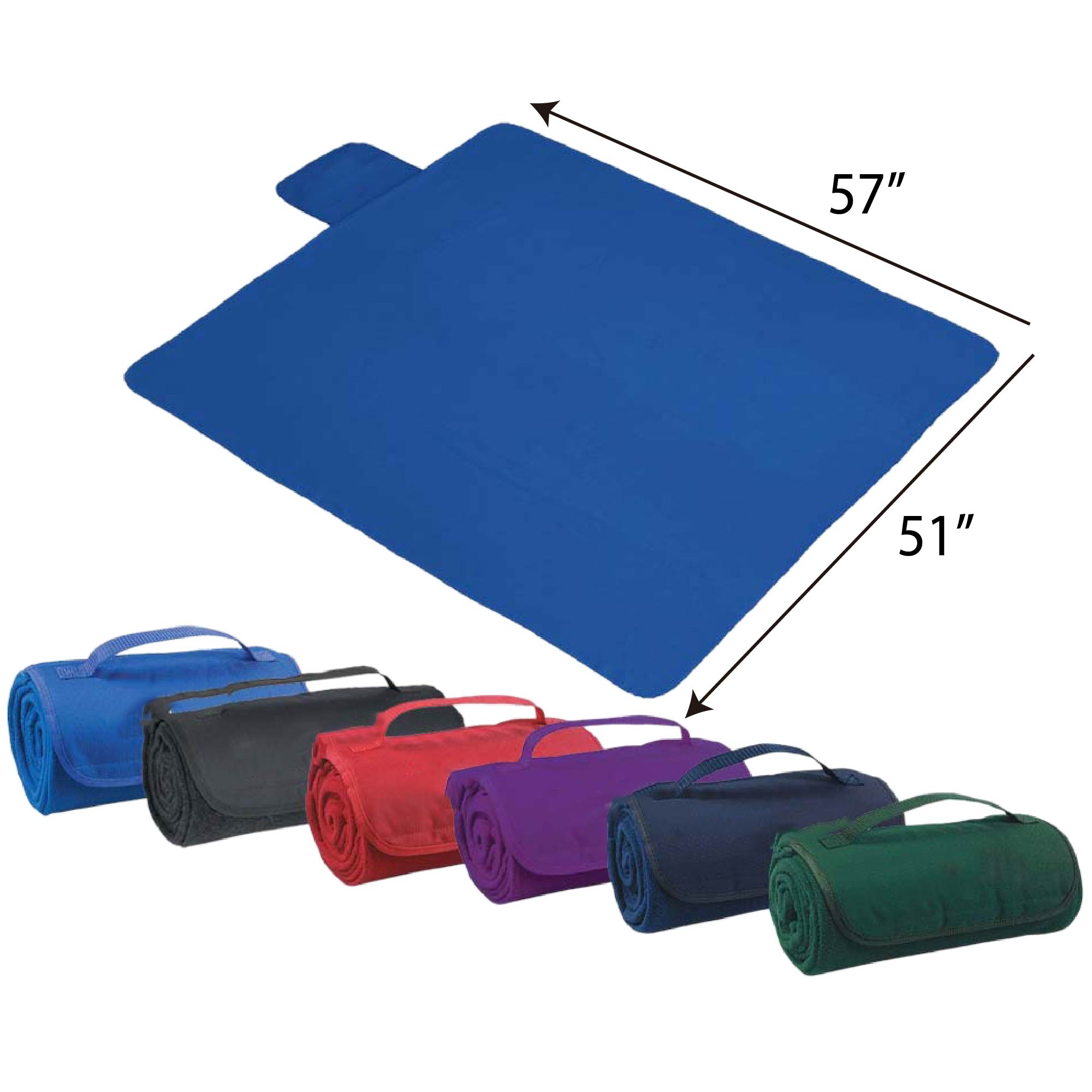 Elevate your experience at outdoor events with these stadium-style blankets, perfect for picnics, public parks, concerts, tailgates, and more. Made from soft, supple polar fleece, these 51" x 57" blankets offer a roll-up design with a hook and loop closure and an integrated carrying handle for ultimate portability. Convert hard, cold ground into the best seat in the house with blankets available in various colors, and customize them with your school, sports team, organizational, or company logo or message. We provide detailed product insights and a seamless sampling process.
