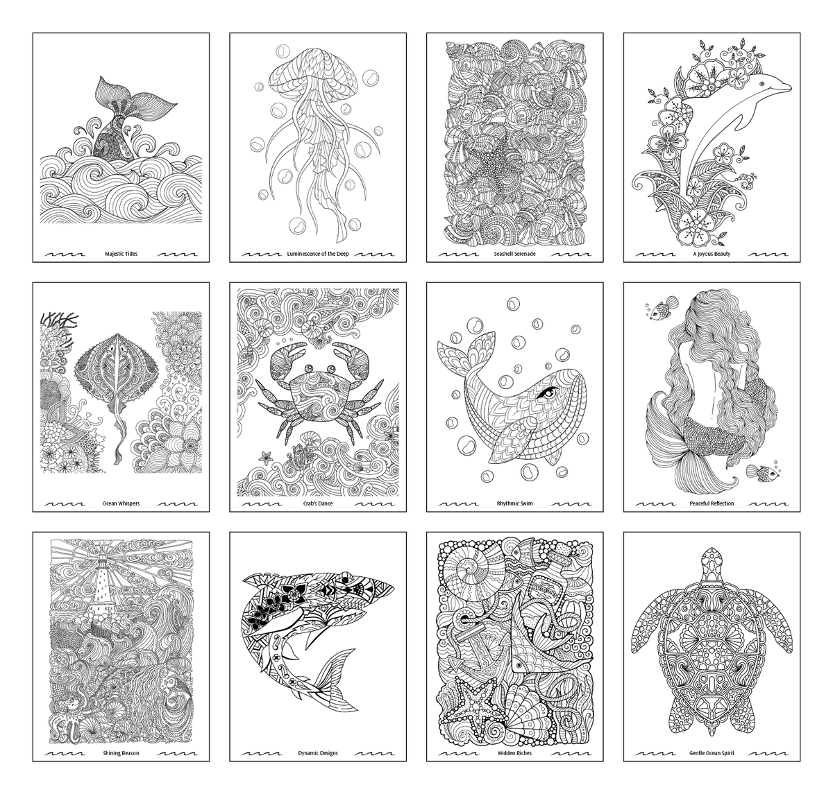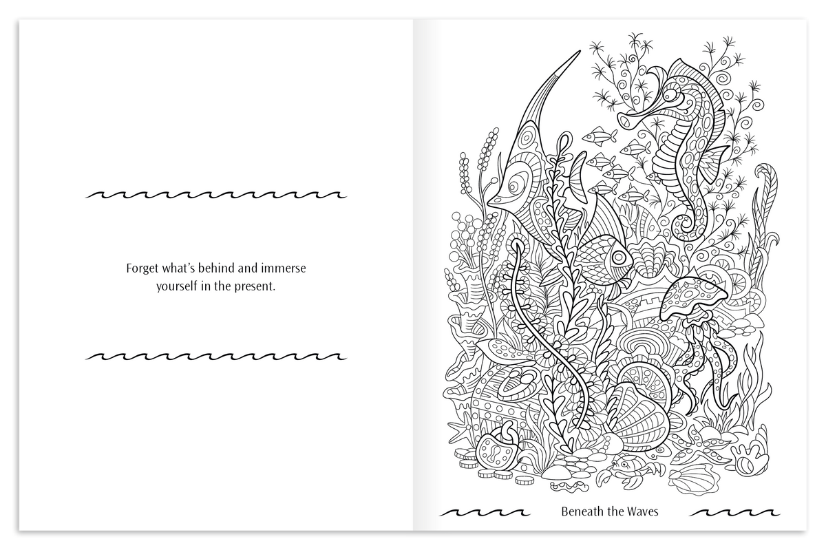 This adult coloring book features 13 beautiful images of the sea accompanied by inspirational messages. The FSC® label means that the materials used for this product come from well-managed FSC®-certified forests and other controlled sources.