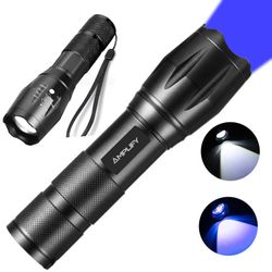 "Rechargeable flashlight SDT-FH double light source white + blue is mainly made of high-quality aluminum alloy.