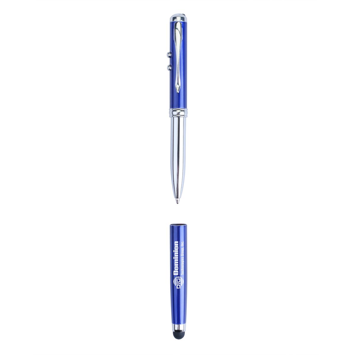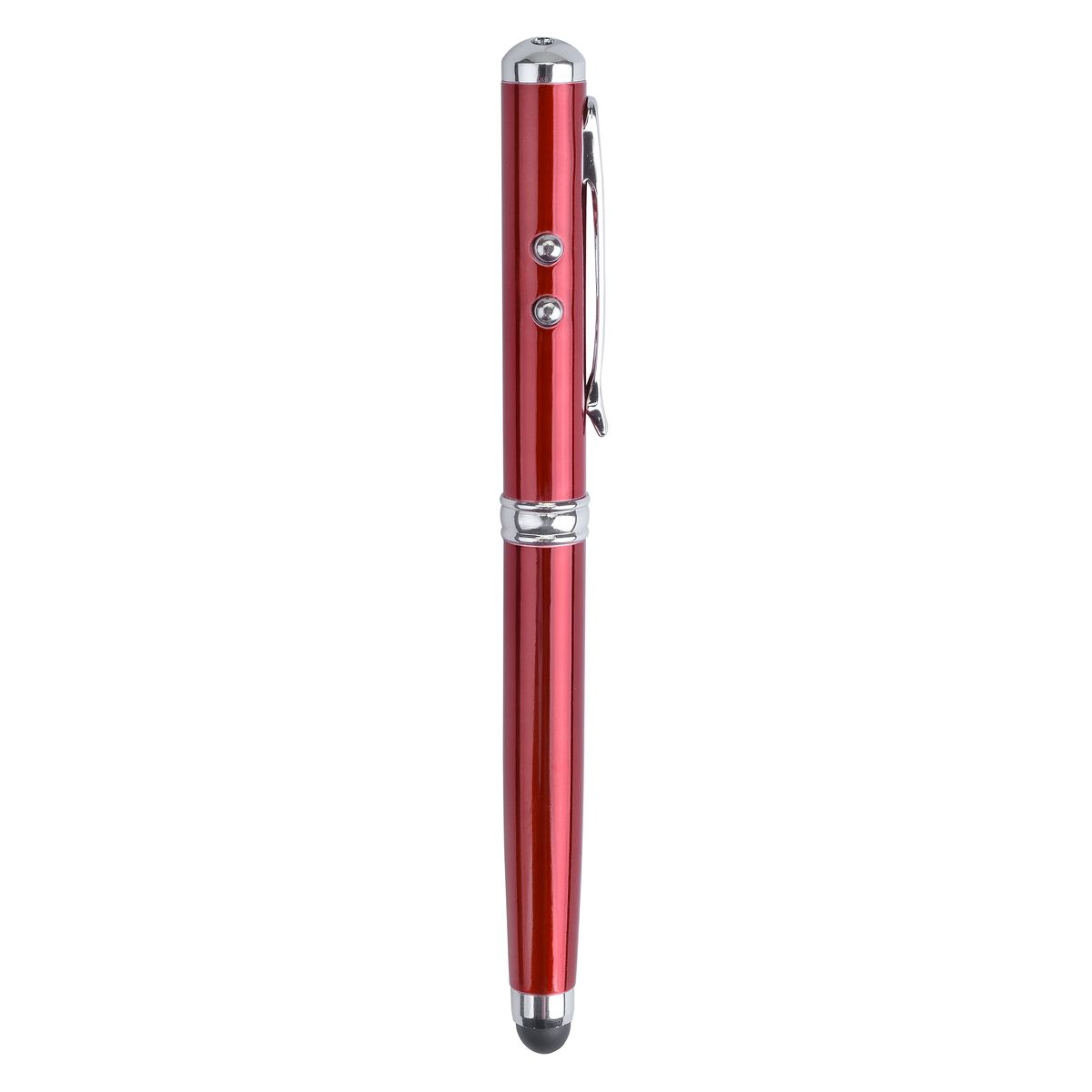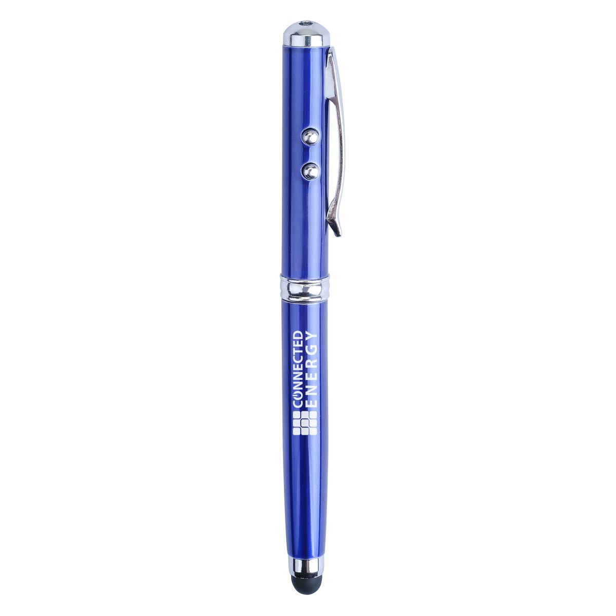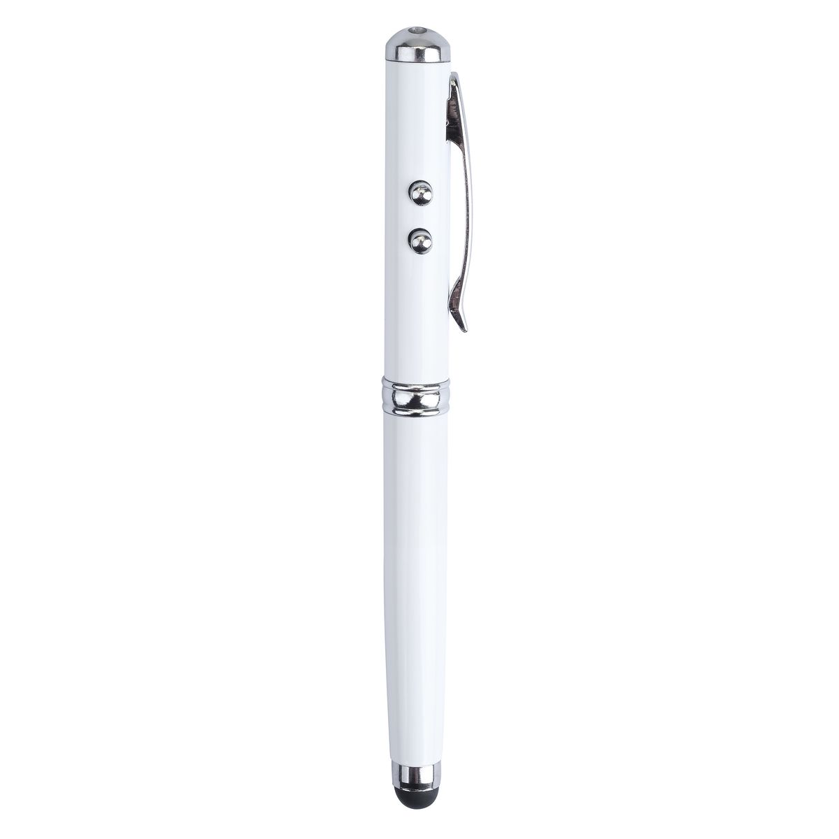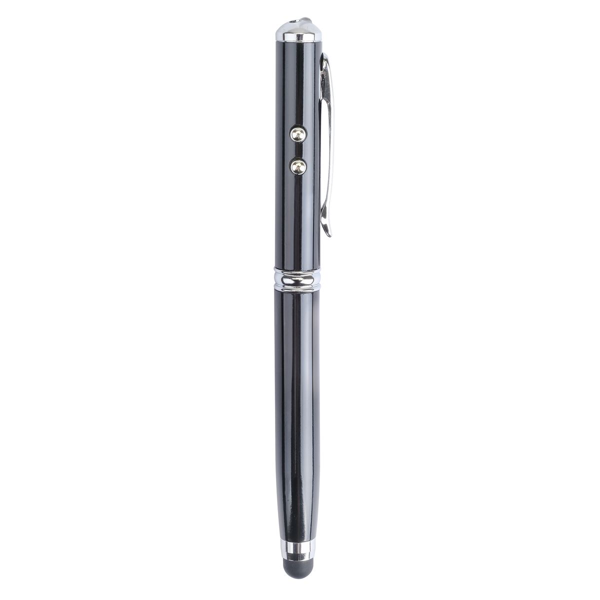 When life demands multi tasking, this 4-in1 pen delivers with an LED light, laser pointer, touch screen stylus, and ballpoint pen.