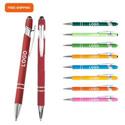 Elevate your writing experience with this premium aluminum ballpoint stylus pen. Designed with an adhesive-coated barrel, sleek chrome trims, and a rubberized finish, it offers both style and comfort. The pen features smooth black ink or blue ink with a click-action mechanism and a built-in stylus for effortless navigation on touchscreen devices. Measuring 0.39" in diameter and 5.5" in length, it's ideal for home, office, or school. Available in a range of colors, and customizable with laser engraving or printed logos, making it a perfect choice for event giveaways and corporate gifts.