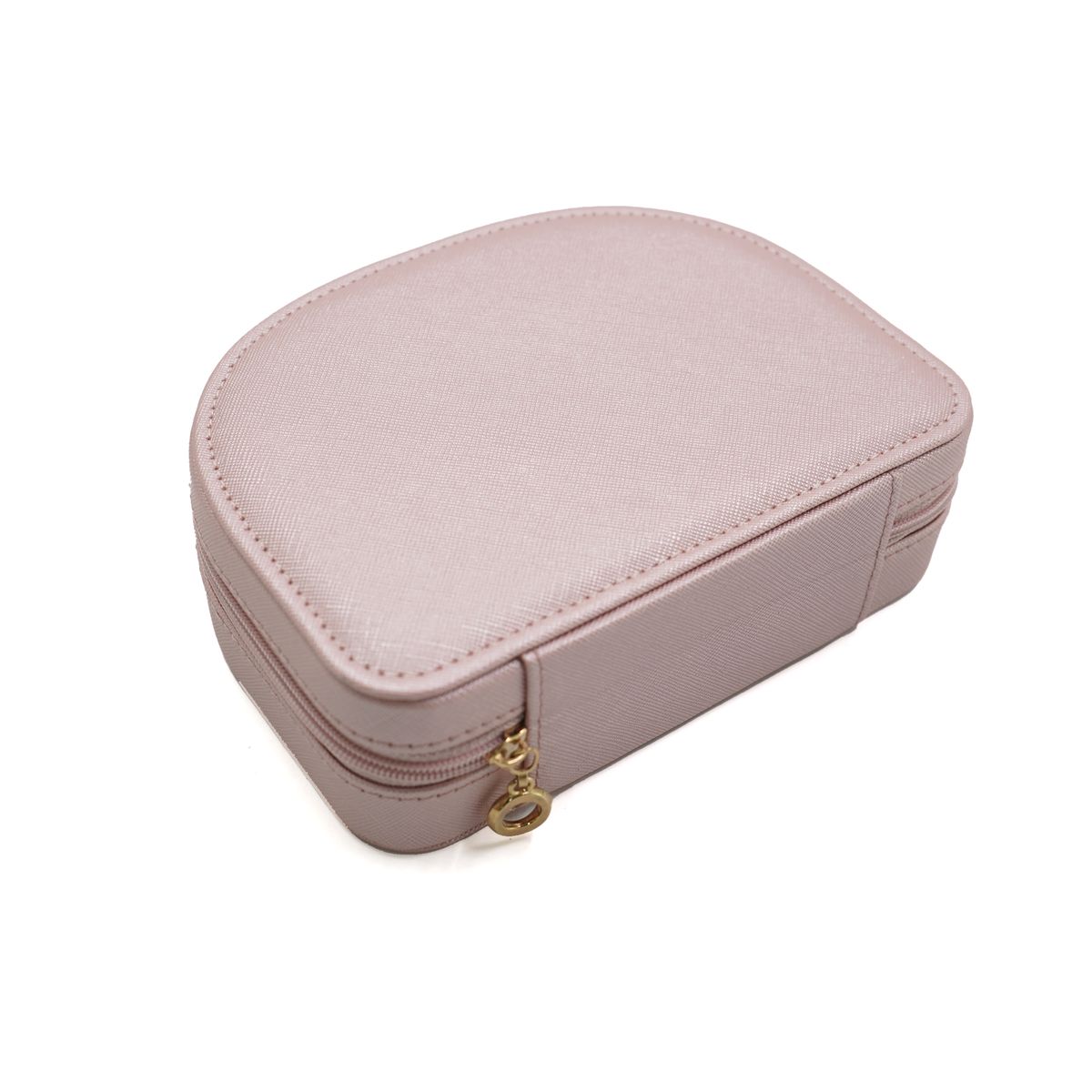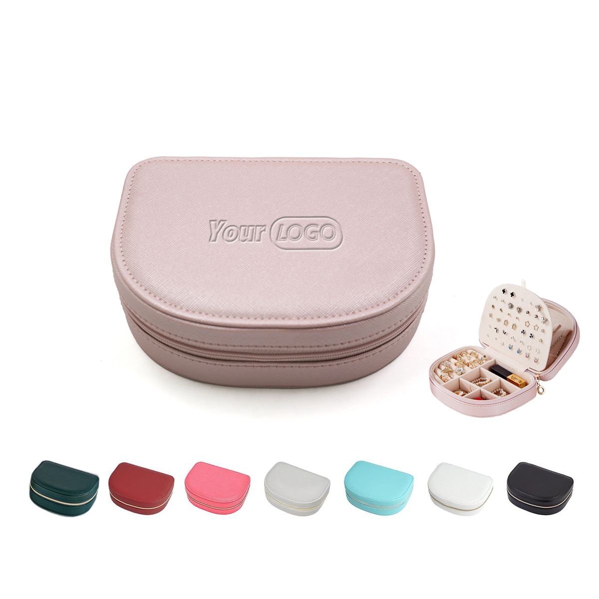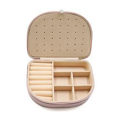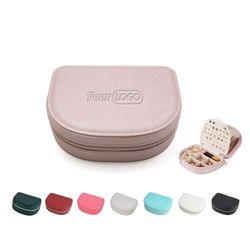Additional InformationA compact semi-round PU jewelry case with soft lining, multiple compartments, and secure zipper closure for organized accessory storage.Orders of 300 pieces or greater are eligible for sea shipping.