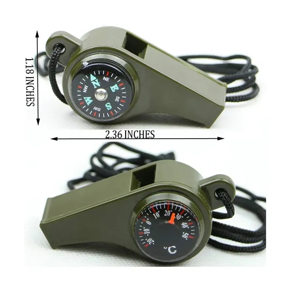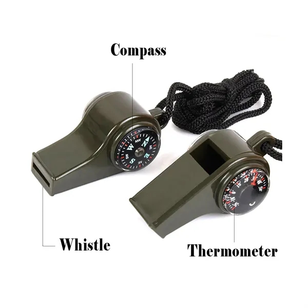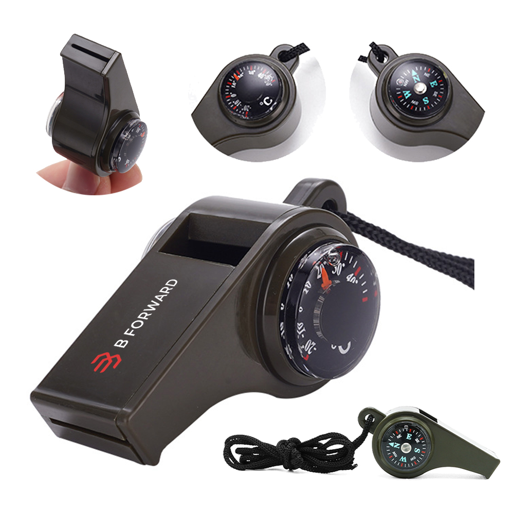 Introducing a versatile survival tool that combines three essential functions in one compact package: a survival whistle, a compass, and a thermometer. This innovative three-in-one design is not only convenient to carry but also incredibly easy to use. Ideal for outdoor activities, this lightweight and compact tool is a must-have for any adventurer. The built-in compass features a liquid-filled design for quick and accurate direction-finding, while the integrated thermometer provides real-time temperature readings even in wet conditions. The loud and penetrating whistle emits a high decibel rate, perfect for signaling distress in outdoor emergencies. Crafted from environmentally friendly plastic, this whistle is not only durable but also lightweight. With a smooth surface and comfortable feel, this whistle boasts a beautiful design that is both practical and aesthetically pleasing.