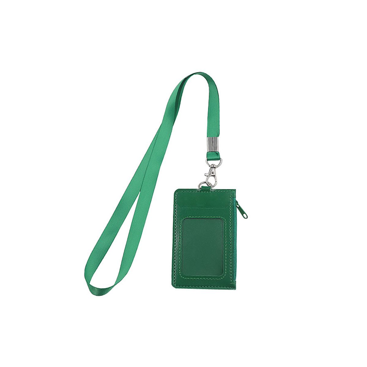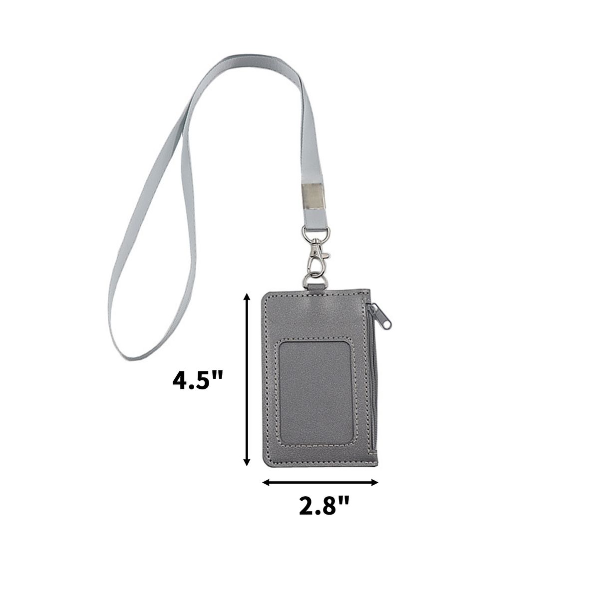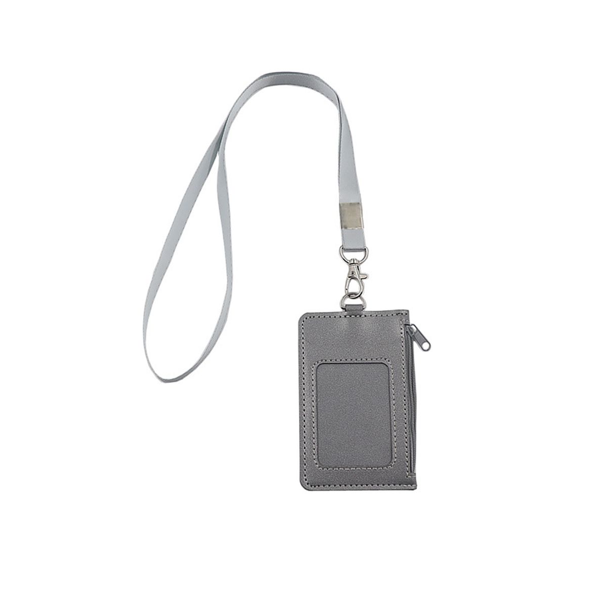 This slim badge wallet offers a soft hand feel and organized storage for daily commuting. It includes a clear front window for identification, a rear slot for quick access cards, and a side zip pocket for coins, keys, or receipts. A detachable seventeen inch neck strap supports hands free wear in office, travel, or event settings. The front panel accepts a printed logo to identify teams or programs while keeping essentials close at hand.