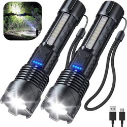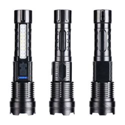 This flashlight is made of aluminum alloy plus abs material, built-in 1200mA battery, Type c USB charging, charging time is about two hours, can be used for about four hours. ipx4 life waterproof glue, the main light has strong light, low light, flash three modes, long press to switch to the side light. The range of the main light is about 1000~1500m, the fuselage has a power display, with tail rope, pen holder, suitable for multiple scenarios such as home, travel, outdoor, auto repair and so on. 6.5"X 1.6"X 1.1".