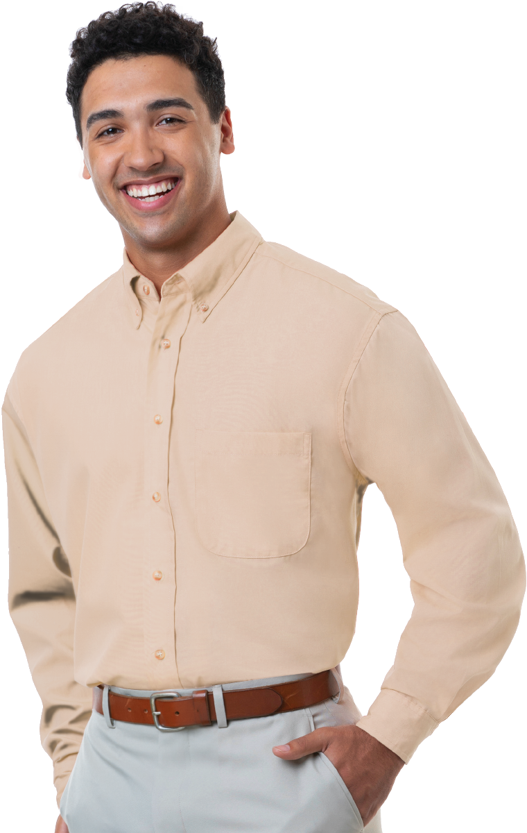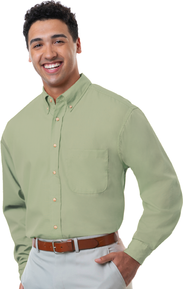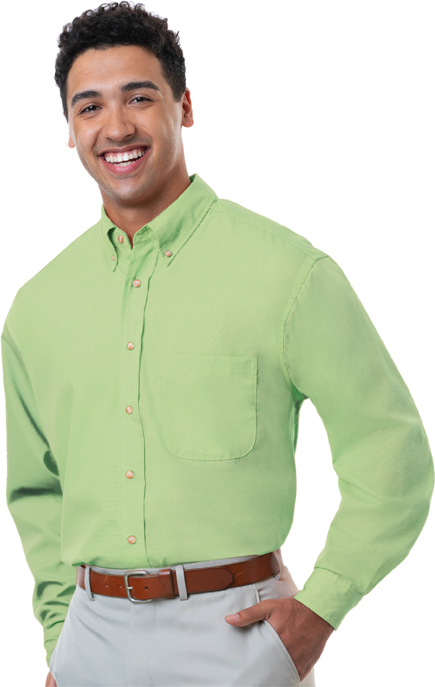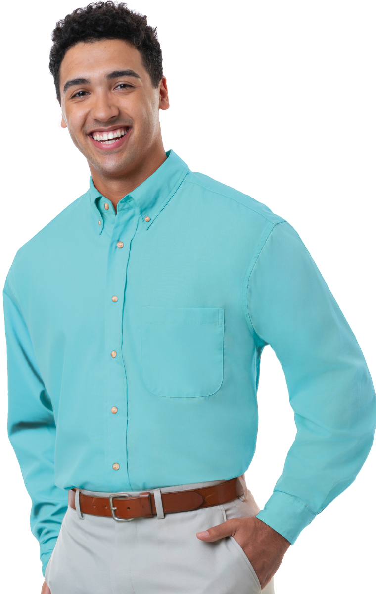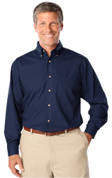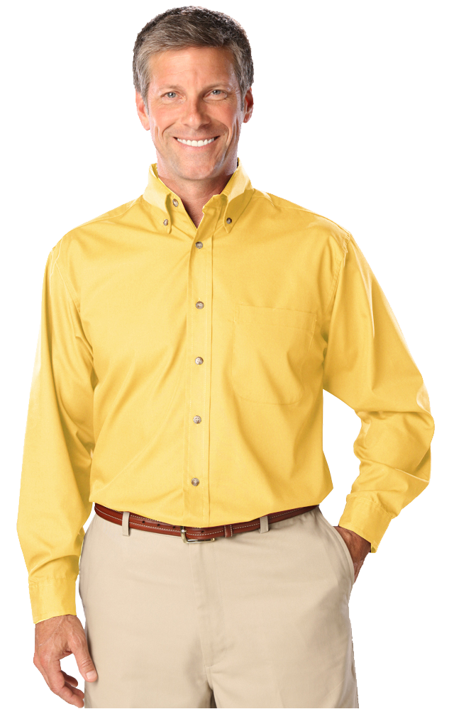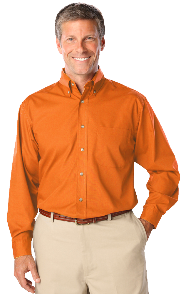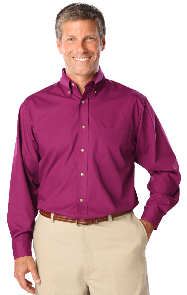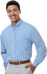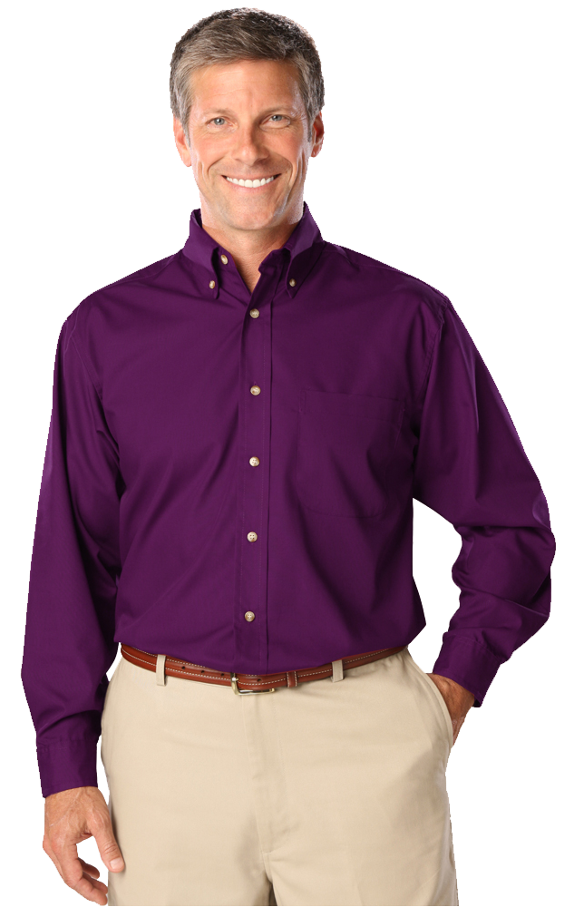 This shirt will definitely pop! Made of a 65% polyester/35% cotton blend, this easy-care and lightweight 5.5 oz. men's long-sleeve poplin shirt has stain-release technology and is also wrinkle/crease resistant. It features a patch pocket, a double-back yoke, two side back pleats, bone-horn buttons and a button-down collar. It is available in several colors and sizes (S-10XL 7216T: LT-3XLT). Make a stylish addition to your formal wardrobe today!