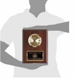 This Cherry Wood Plaque comes constructed from solid wood and features a clock embedded into its surface. This scholarly plaque makes for a great way to recognize and commemorate educators, legislators, attorneys, or other professionals. It also makes for a great gestures to recipients of lifetime achievement awards, retirees, or executives alike. It is fully customizable thanks to our laser engraving service. Add a name, message, or logo to the brass front plate attached.
