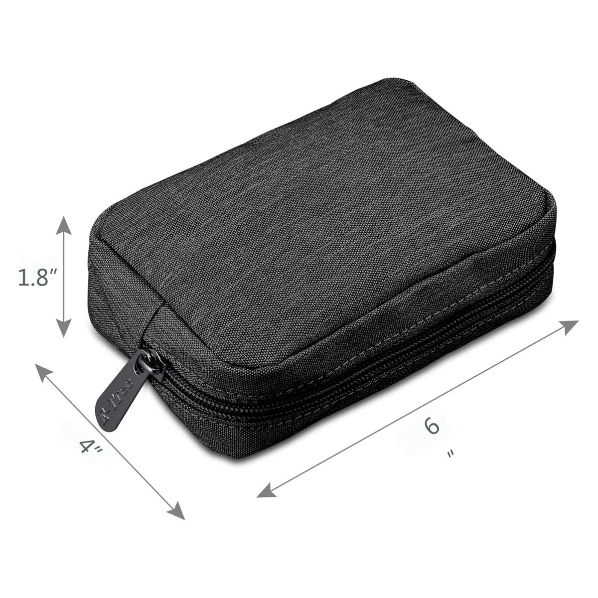 The bag is made of Oxford.Small carrying case for cosmetics, medications, kleenex, keys, coins etc - for daily use at work.Small bag is also great for traveling, to organize electronics like powerbank, chargers and cords. Has netted side pockets that are useful for smaller items.