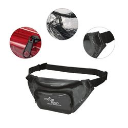 Additional InformationTransparent PVC waist bag with dual zippered pockets and adjustable strap. Ideal for events, and branded outdoor promotions.