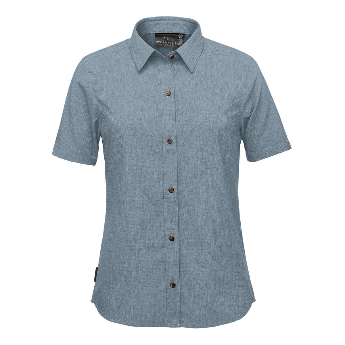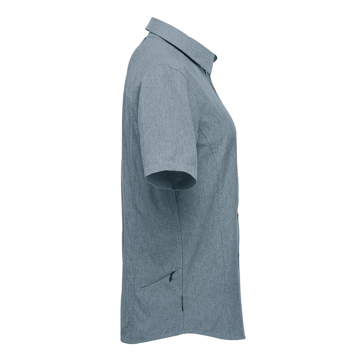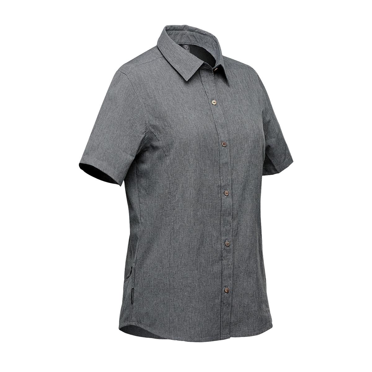 Description: Short sleeve shirt built for work or play with ultralightweight, quick to dry, stretch-woven dobby fabric. Featuring a tailored collar and contoured seaming for maximum comfort. The women’s invisible zippered pocket conveniently secures personal items.